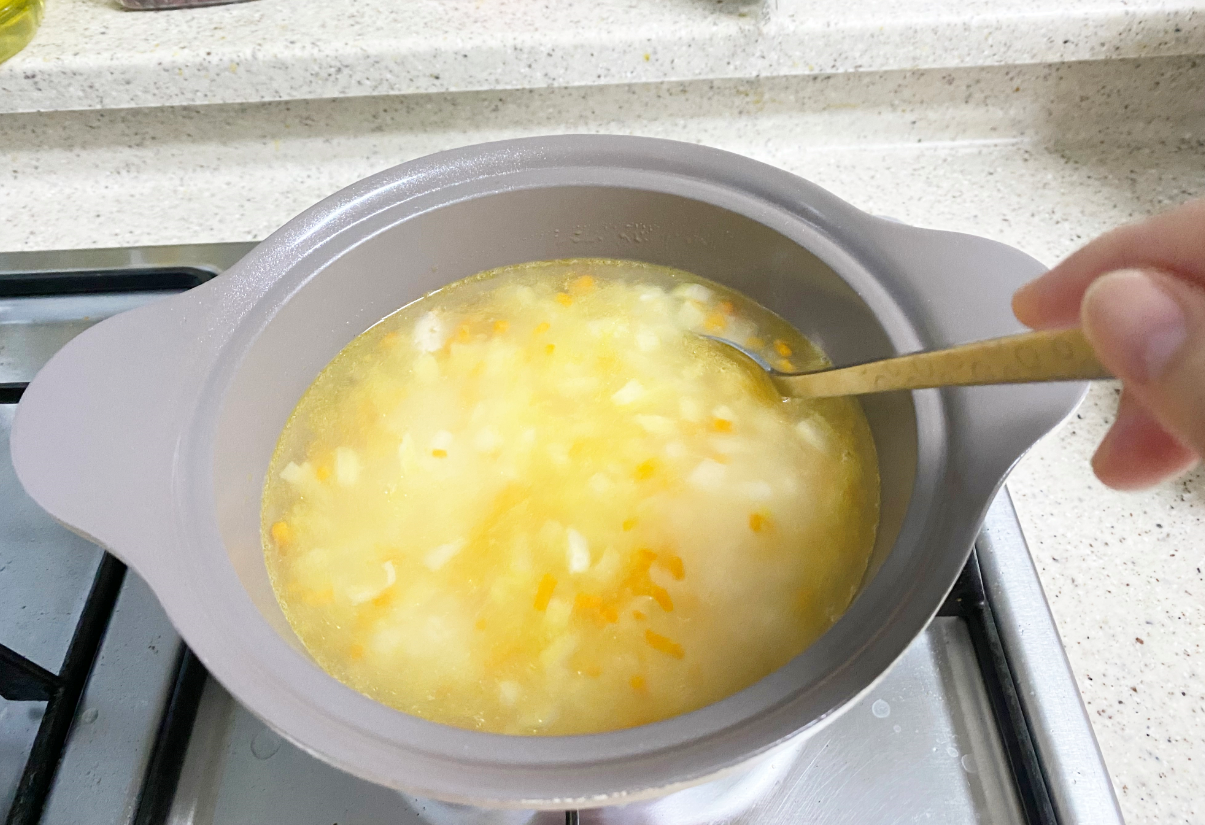 전자렌지에 데운 즉석밥 혹은 찬밥을 넣은 후 물을 넣고 끓여준다.