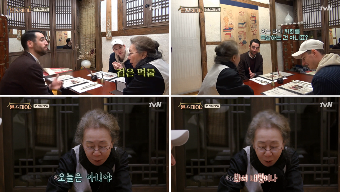 1회차 마지막 예고 영상에 나온 유쾌한 호주&네덜란드 손님과 위트 넘치게 대화를 나누는 윤스테이 회장님의 대화 속에 등장한 오징어 먹물. 오징어 먹물은 어떤 요리에 들어가는 걸까 궁금했는데 바로 부각의 재료였던 것이다.